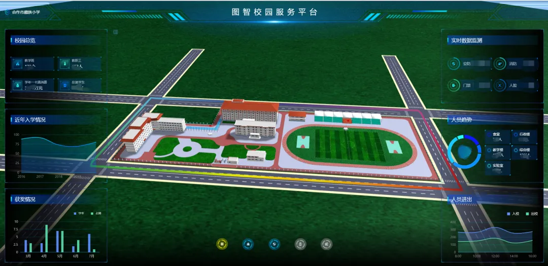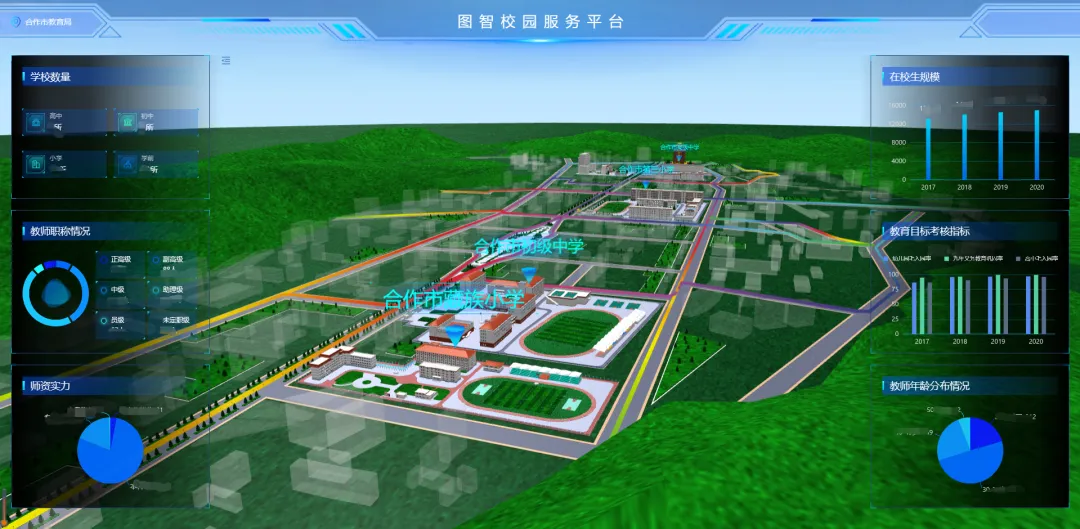 在甘南州临潭县智慧校园统一管理平台建设项目中,我们以图智校园服务平台为基础,建设临潭县局校联动的智慧校园平台。项目选取临潭县高级中学、临潭县初级中学、临潭县第三小学、临潭县藏族小学为试点,依托物联网、大数据平台,通过数字孪生技术构建镜像化的虚拟校园集群。以学校管理、校园安全、设备运维、消防管控等为应用场景,实现教育局对下属学校的全域感知和有效管理。项目还充分体现了藏族地区的民族特色,得到了临潭县教育局和有关学校的认可和高度评价,并于2023年通过验收。