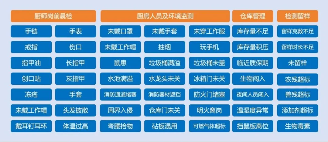 它是面向餐厅管理者提供的一套食安监管智能化软硬件设施,通过厨房设备智能化改造升级,让食安管理工作可量化、可追溯、可评估,减少人工干预,大幅度降低食品安全风险,打造餐饮新型食安管理体系。系统全面覆盖了日常运营管理需求,不仅能自动生成包括考勤、晨检、留样管理、食材验收、出入库记录等在内的详细台账,还能自动识别并记录后厨各类违规行为,确保操作合规。