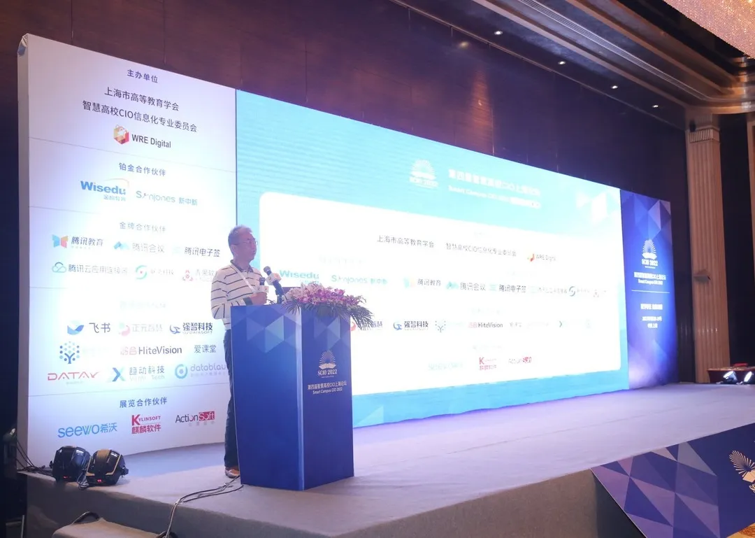 近日,智慧高校CIO上海论坛开幕,论坛由智慧高校CIO信息化专业委员会主办。上海市高等教育学会常务副会长晏开利出席论坛,复旦大学、西安交通大学、西北工业大学、华东师范大学、南京理工大学等近百所高校信息中心主任参加论坛,共同为教育行业建设发展献计献策。思恒信息科技总工程师李为硕做了教育数字化方案专题汇报,并代表公司领奖。